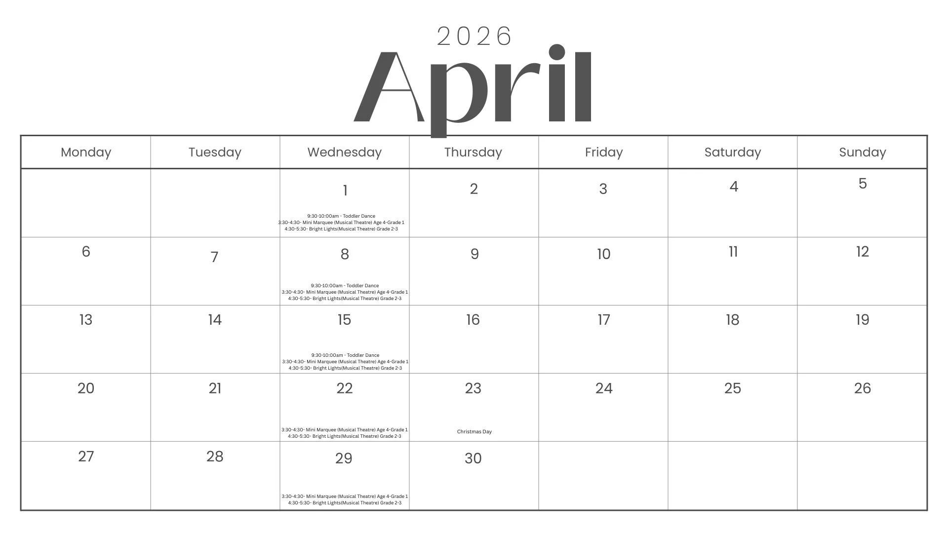 Class Calendar